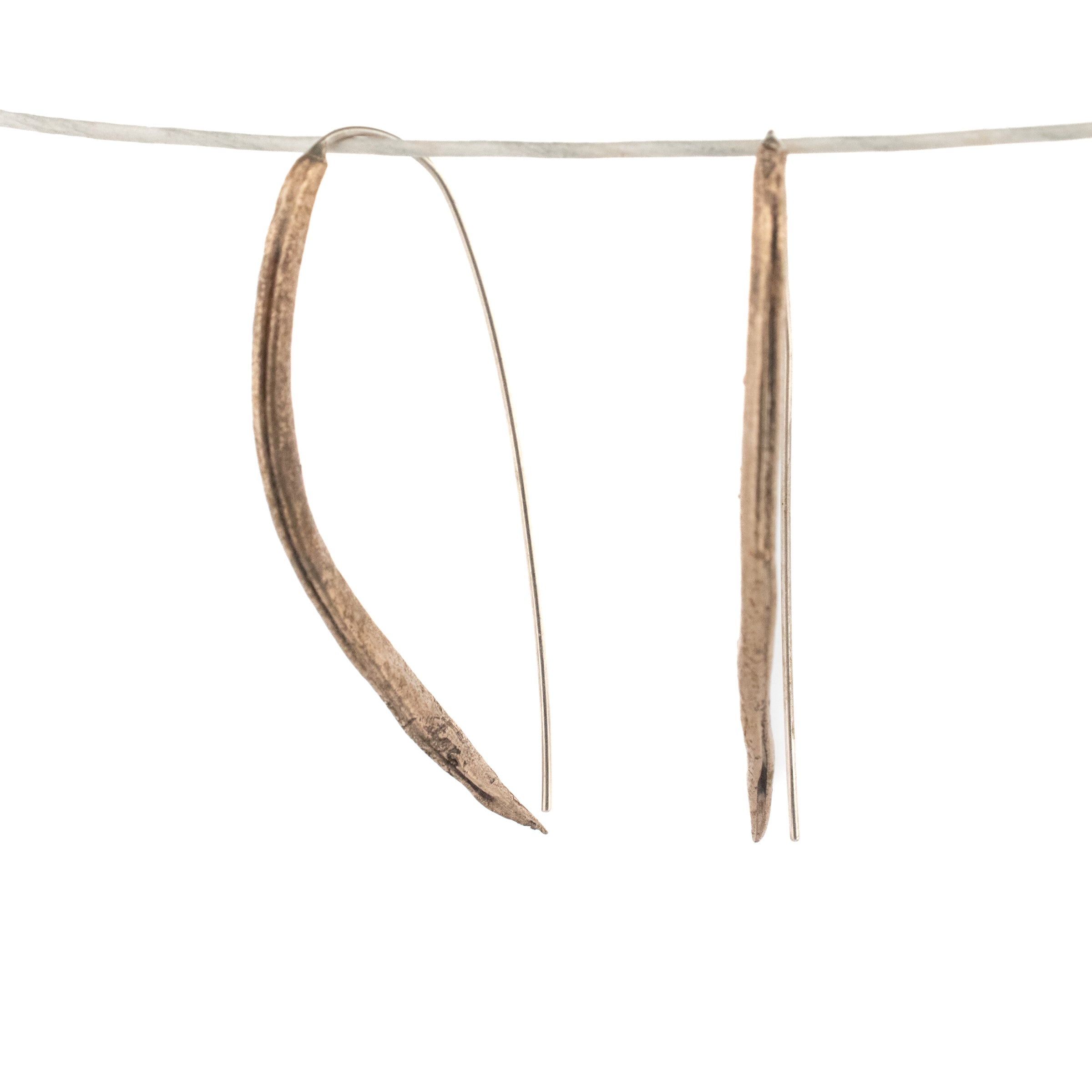 Elegant earrings crafted from the whimsical Peperomia Ferreyrae succulent, aka the Happy Bean plant. Happy Bean Peperomia petals look like skinny bead pods. I collect petals from a humble houseplant that sits atop a bookcase in my home. Each piece is cast in solid metal preserving unique dimension and texture from source petals.