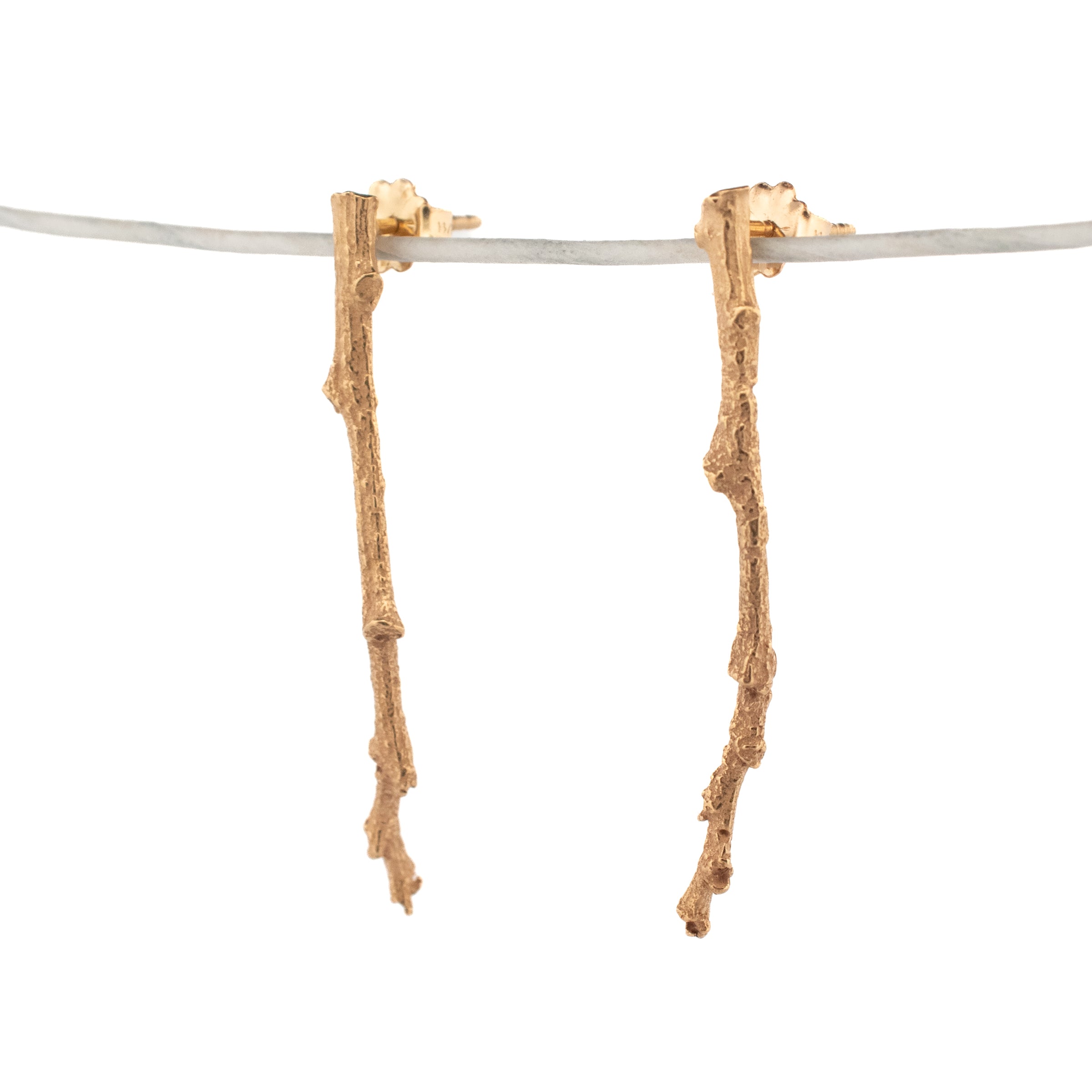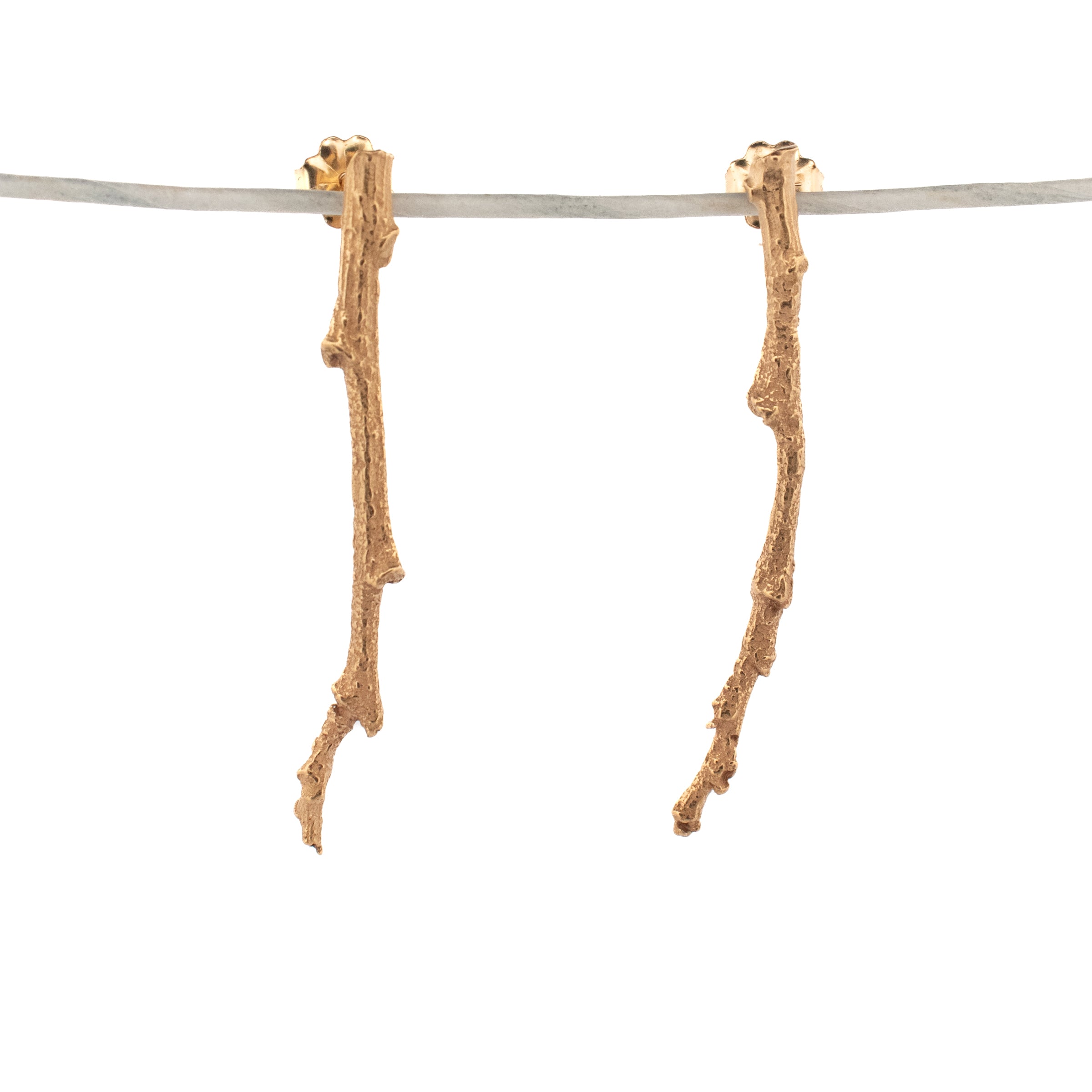 A piece of nature hanging delicately from the ear. Created from a Chinese chestnut branch sourced from my parent's back acre. Each piece is cast in solid recycled metal preserving unique dimensions and texture from the source plant. True-to-nature jewelry ideal for everyday wear!