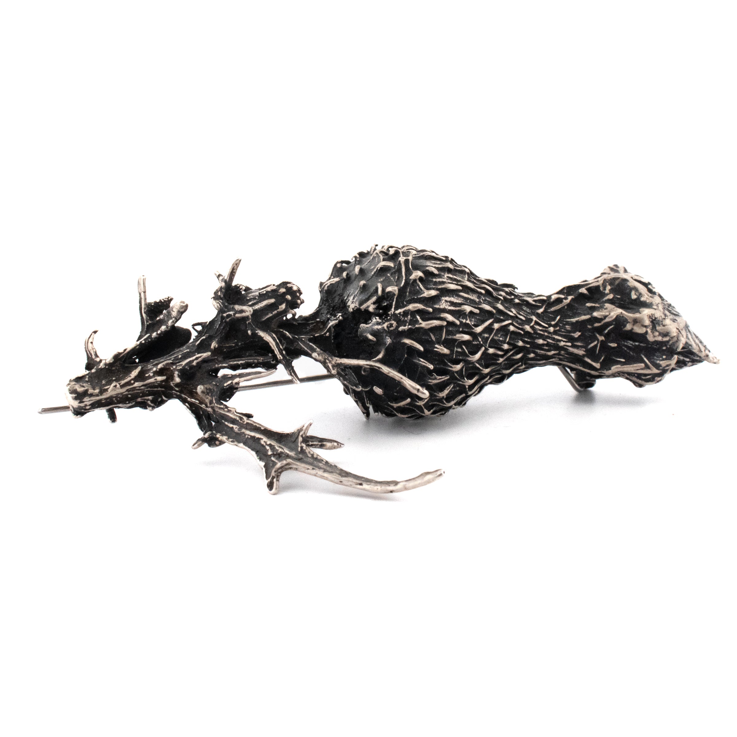 Cast from the actual plant in solid recycled metal preserving the unique nature of each plant to make truly true-to-nature jewelry. A hefty piece in solid sterling silver with a steel wire.