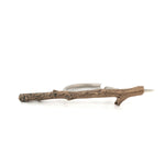 A simple twig rests on 2-3 fingers. Similar in look to a double-finger ring but without the restrictions. Recommended for middle finger for easiest wear. Created from a Chinese chestnut branch sourced from my parent's back acre. Cast in solid bronze preserving unique dimension and texture from the source plant. Sterling silver band.