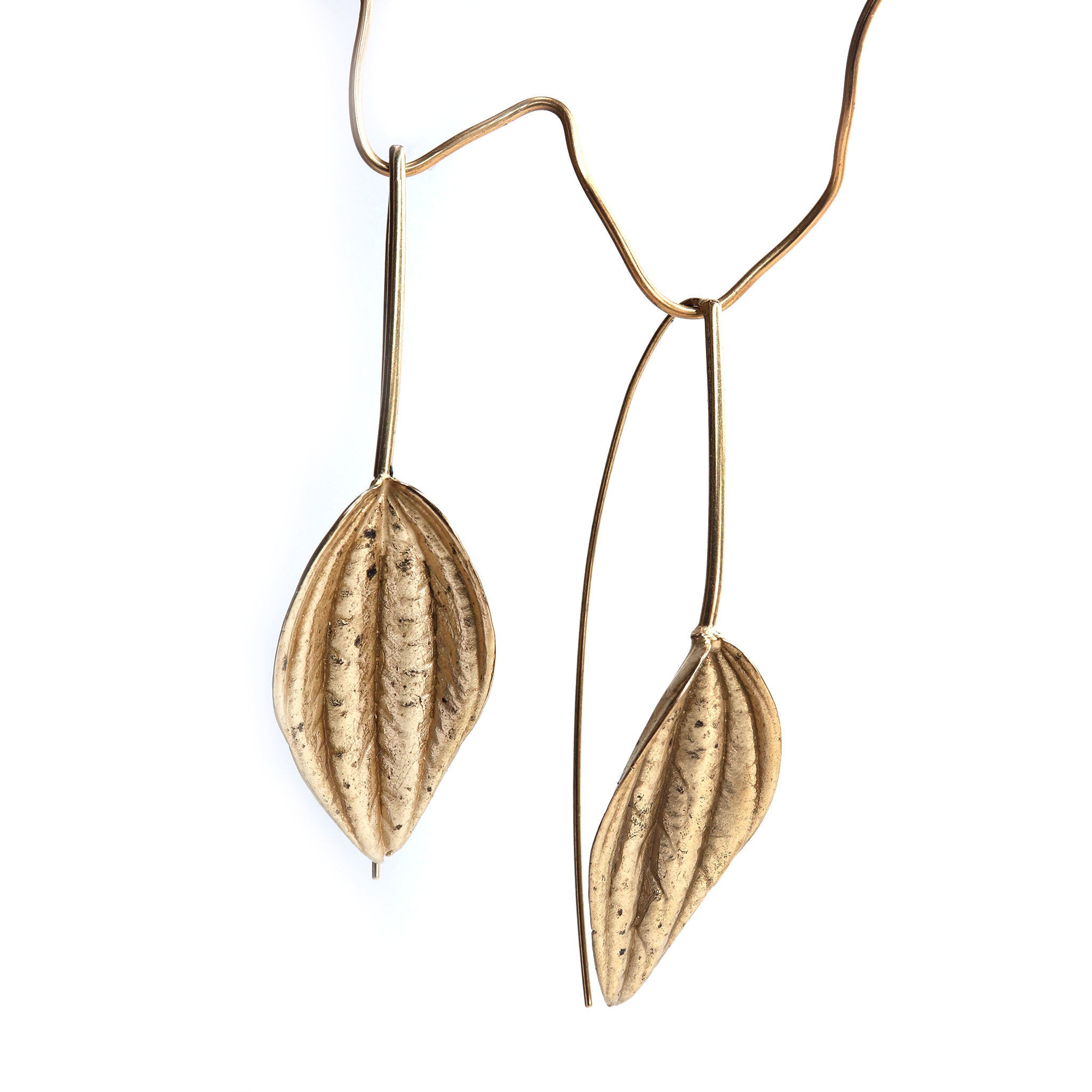 Found natural ephemera becomes treasured jewelry in silver, bronze, or gold. All pieces by Tree Trunk Arts are created with a lost wax casting process that ensures each piece is entirely unique. Chosen plant parts are encased in wet plaster to create a mold. Plaster molds enter a kiln for 8+ hours, burning out all plant material. Metal is centrifugally thrown into the remaining mold creating a solid metal model ready to become heirloom-quality jewelry