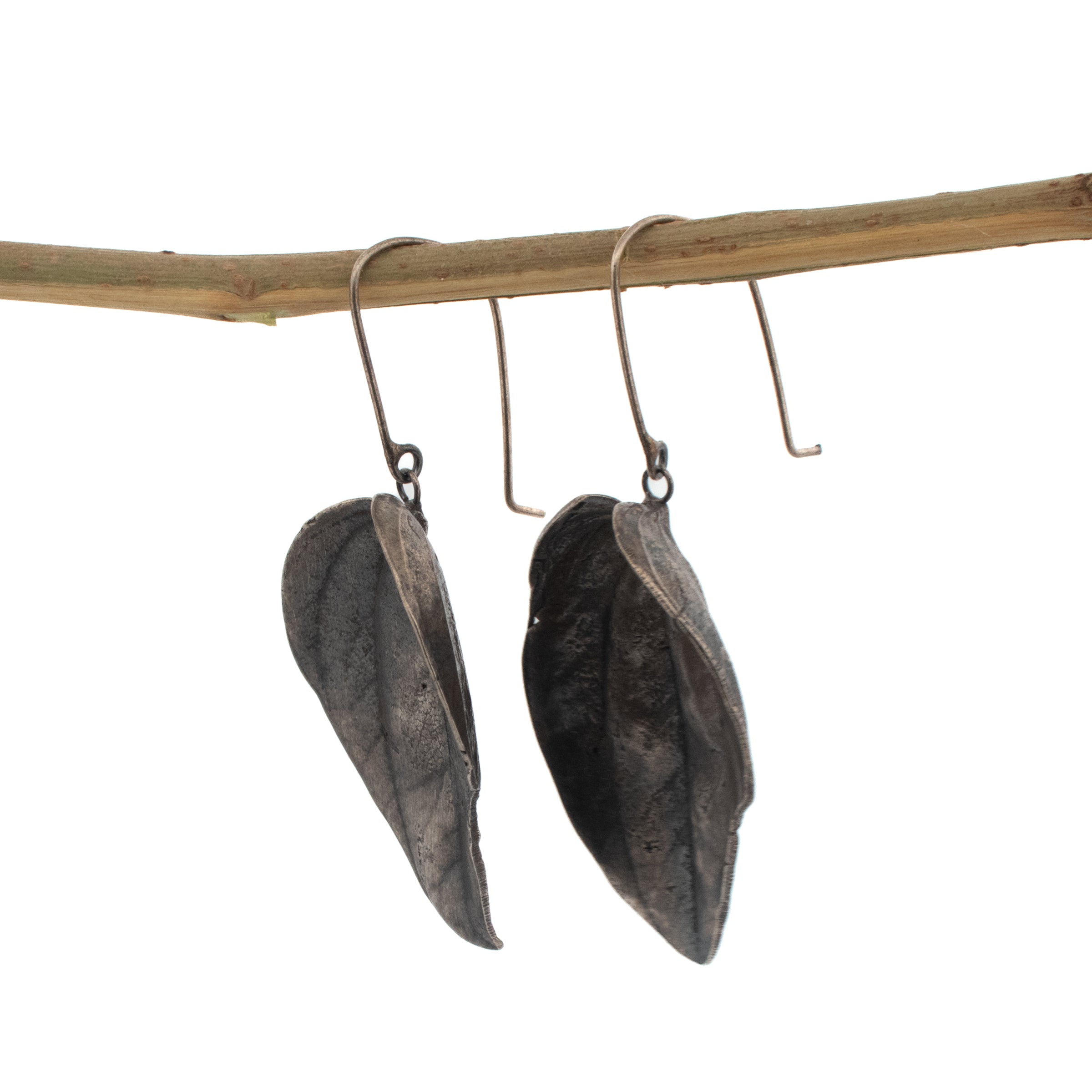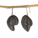 Small-size peperomia leaf dangle earrings are full of eye-catching texture. Peperomia is also known as radiator plant. I grow peperomia as part of my home plant collection - verdant plants adorn my bookcases and window sills, bringing nature indoors. Thick stems and fleshy leaves make this plant ideal for casting. Each piece is cast in solid metal preserving unique dimension and texture from the source plant. No leaf is identical to another. For this reason, earrings will be sisters, not twins.