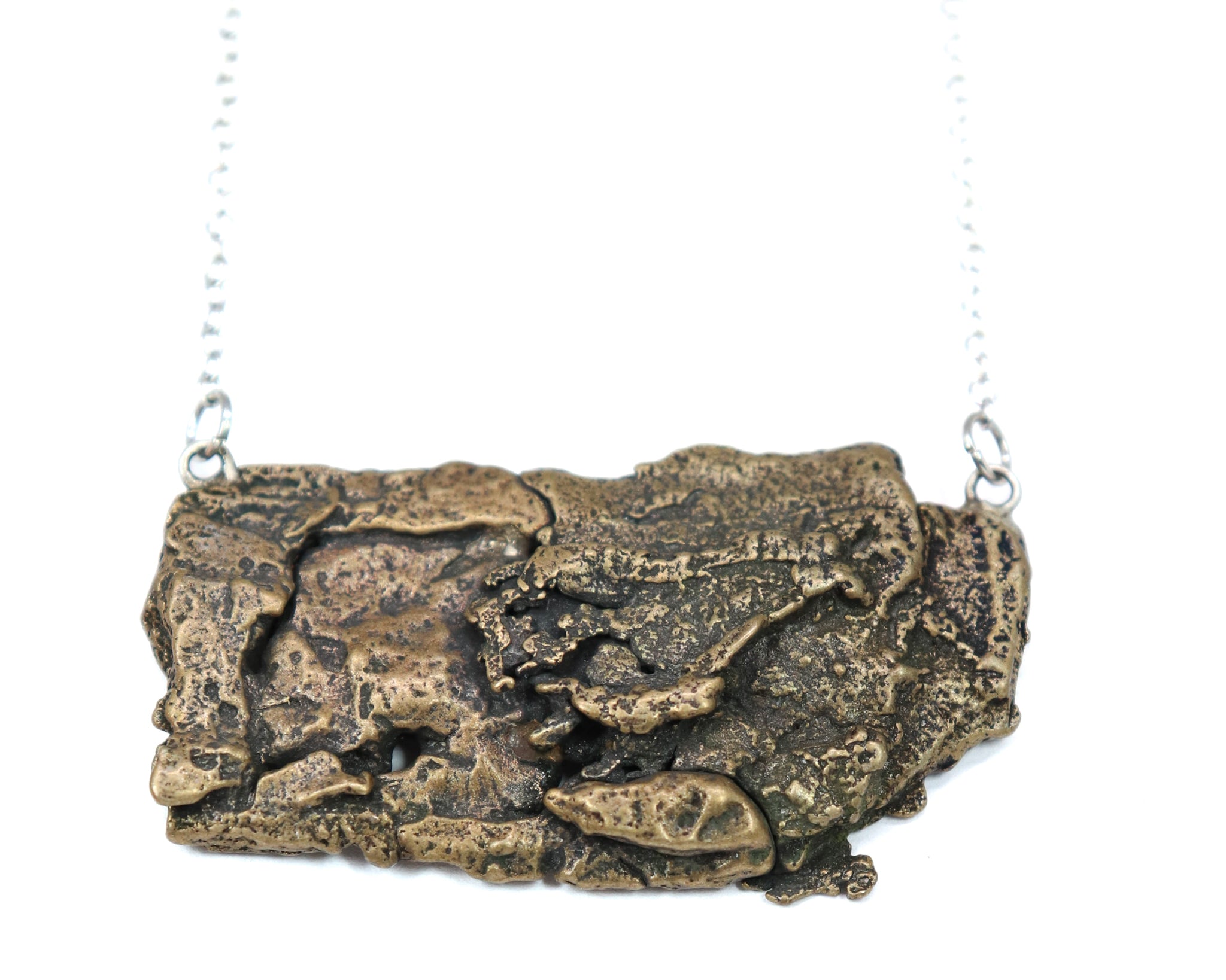 I collect bark from woodpiles and fallen trees on my adventures all across Michigan. Hearty pieces full of bold personality and texture! Each piece is both abstract and organic. Every piece is cast in solid metal preserving unique dimension and texture from the source bark. Commonly collected trees include walnut, maple, ash, and oak.