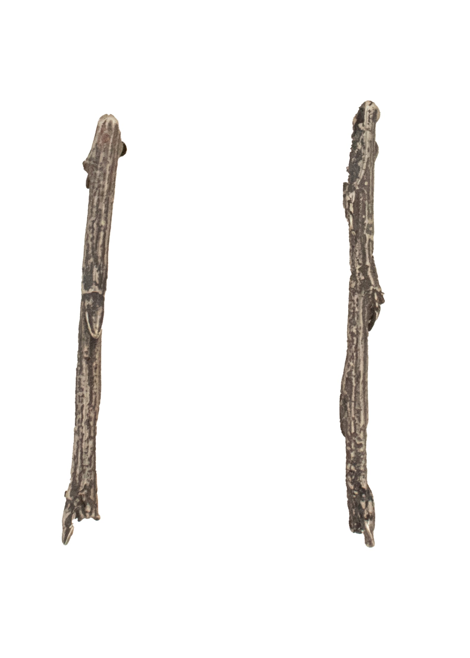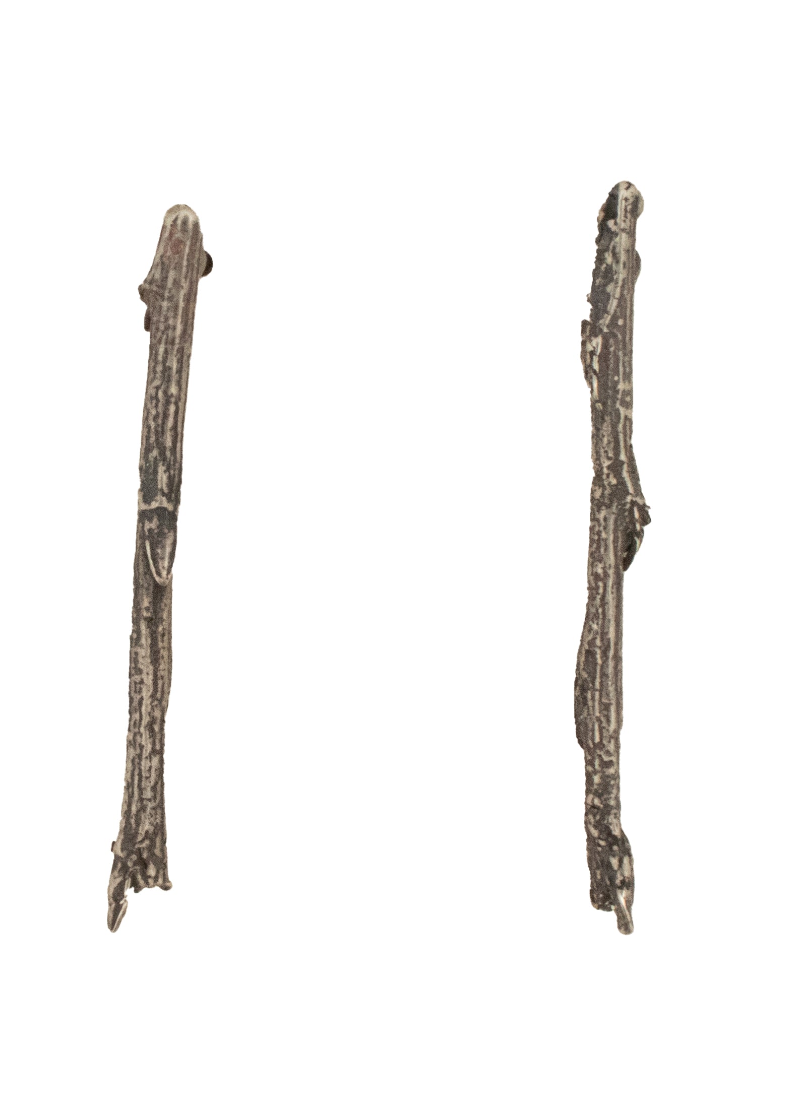A contemporary earring that is graceful & simple in form. Twig focals are created from willow sourced from Belle Isle in Detroit. Each piece is cast in solid metal preserving unique dimension and texture from the source plant. No twig is identical to another. For this reason, earrings are sisters, not twins. Light enough for all-day wear.