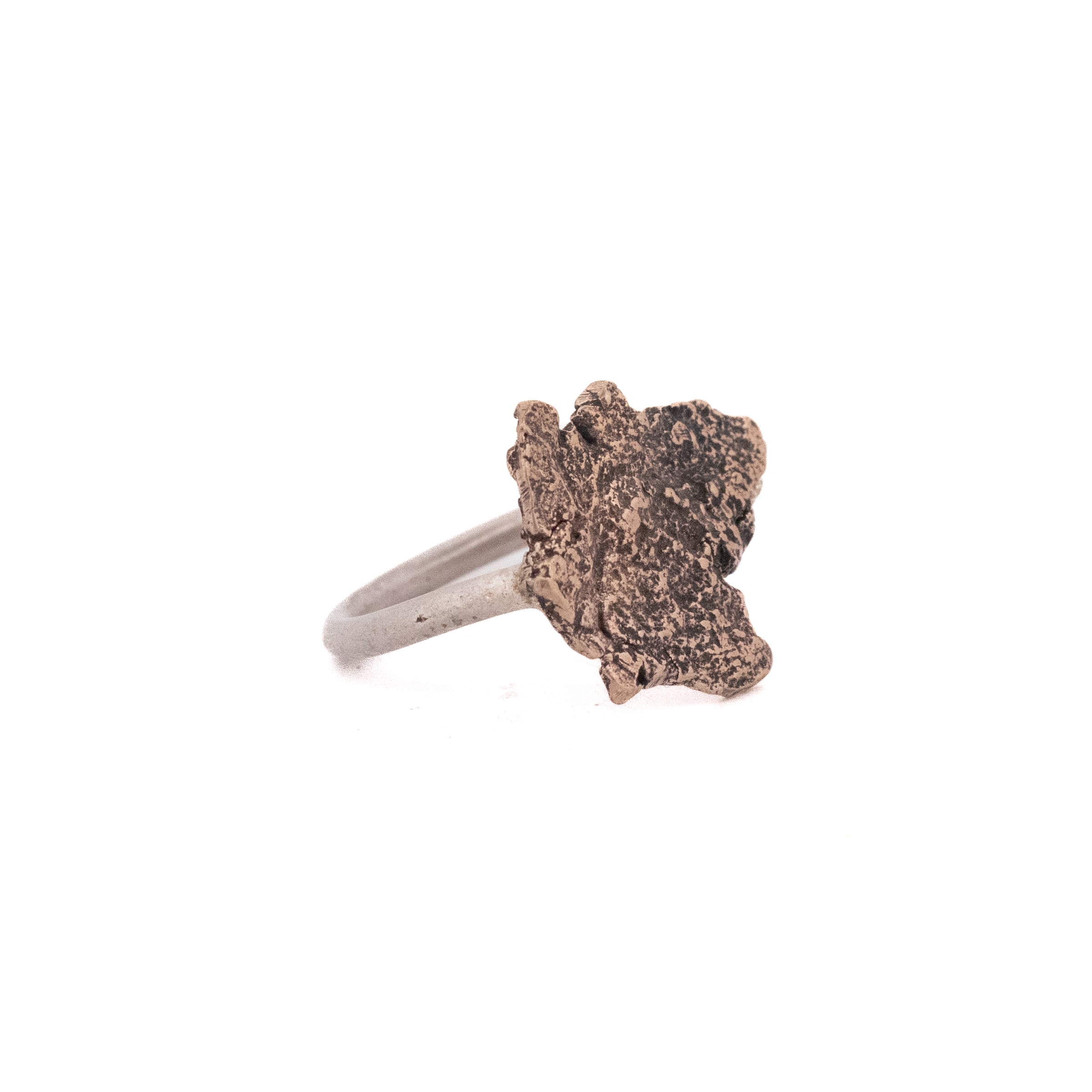 Tree bark rings in vertical or shield style. An easy-to-wear statement ring with gorgeous texture. I collect bark from woodpiles and fallen trees on my adventures all across Michigan. Every piece is cast in solid metal preserving unique dimension and texture from the source bark. An antique finish emphasizes this texture.
