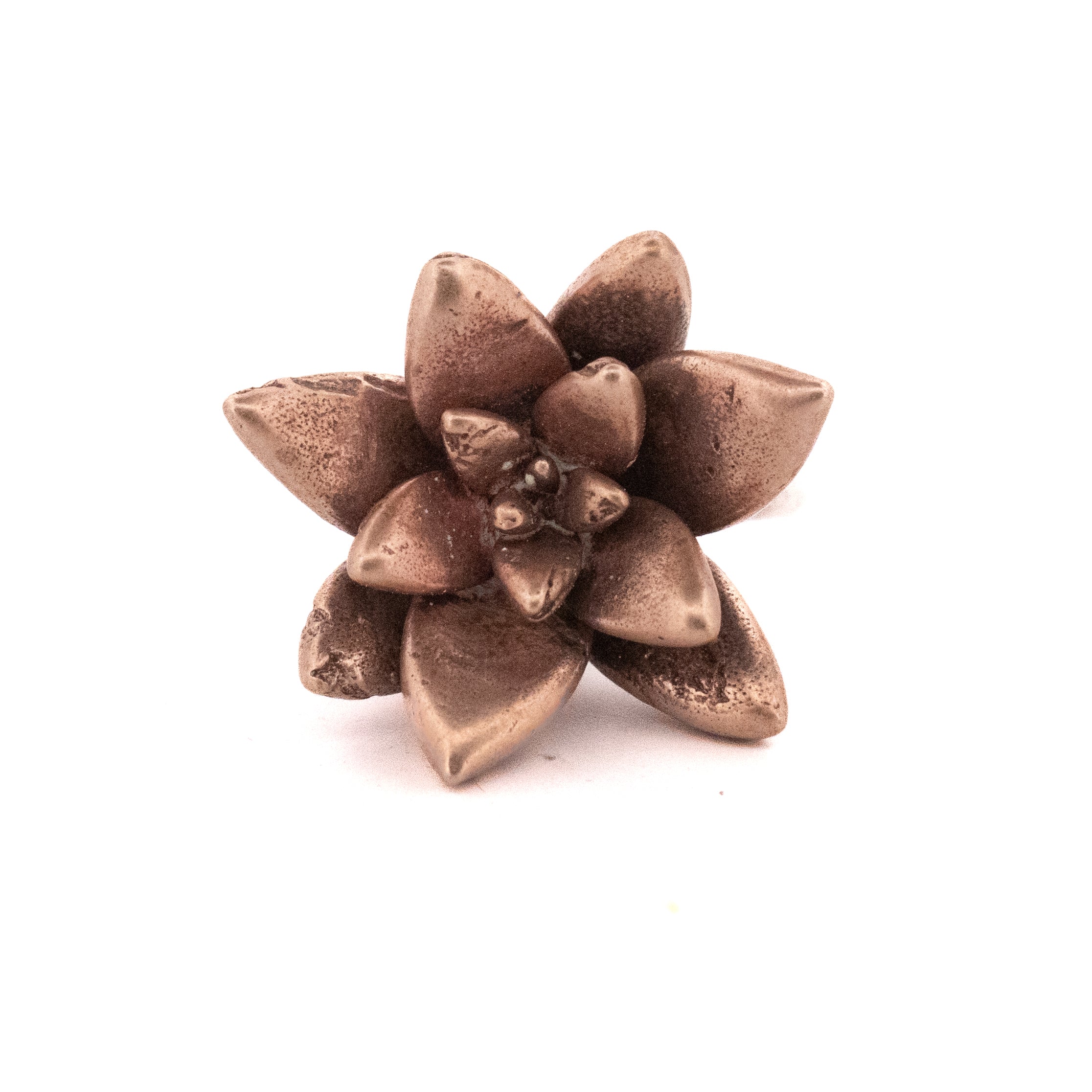 Show off the mesmerizing beauty of succulents with the floral succulent ring. The focal is cast from x Sedeveria, a cross between sedum and echeveria succulents. Each succulent is grown & collected from my plant collection in my Detroit home. In the summer months, succulents adorn my front porch, cascading out of their pots. In the winter I bring nature inside to live in my office windows. Each piece is cast in solid metal preserving unique dimension and texture from the source plant.