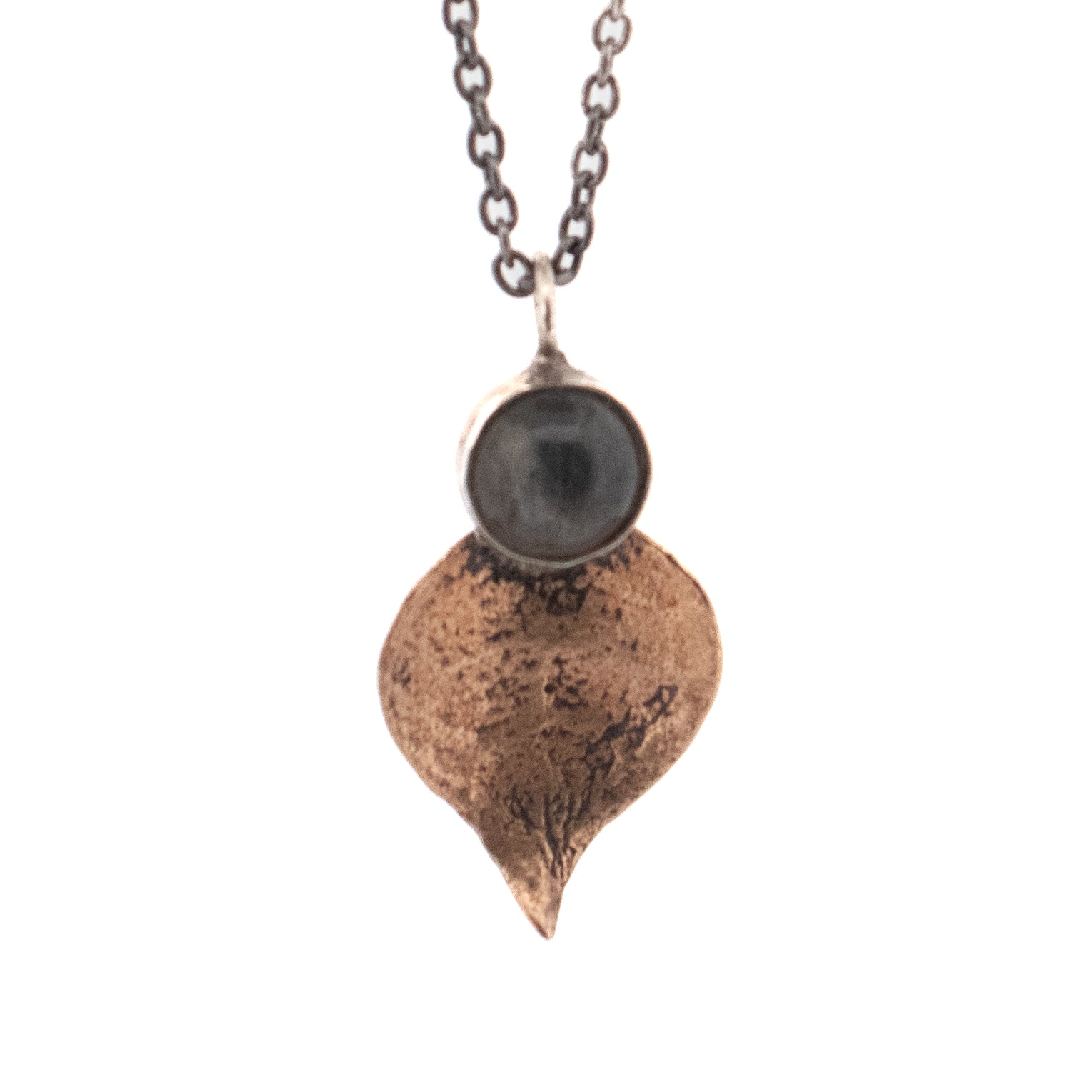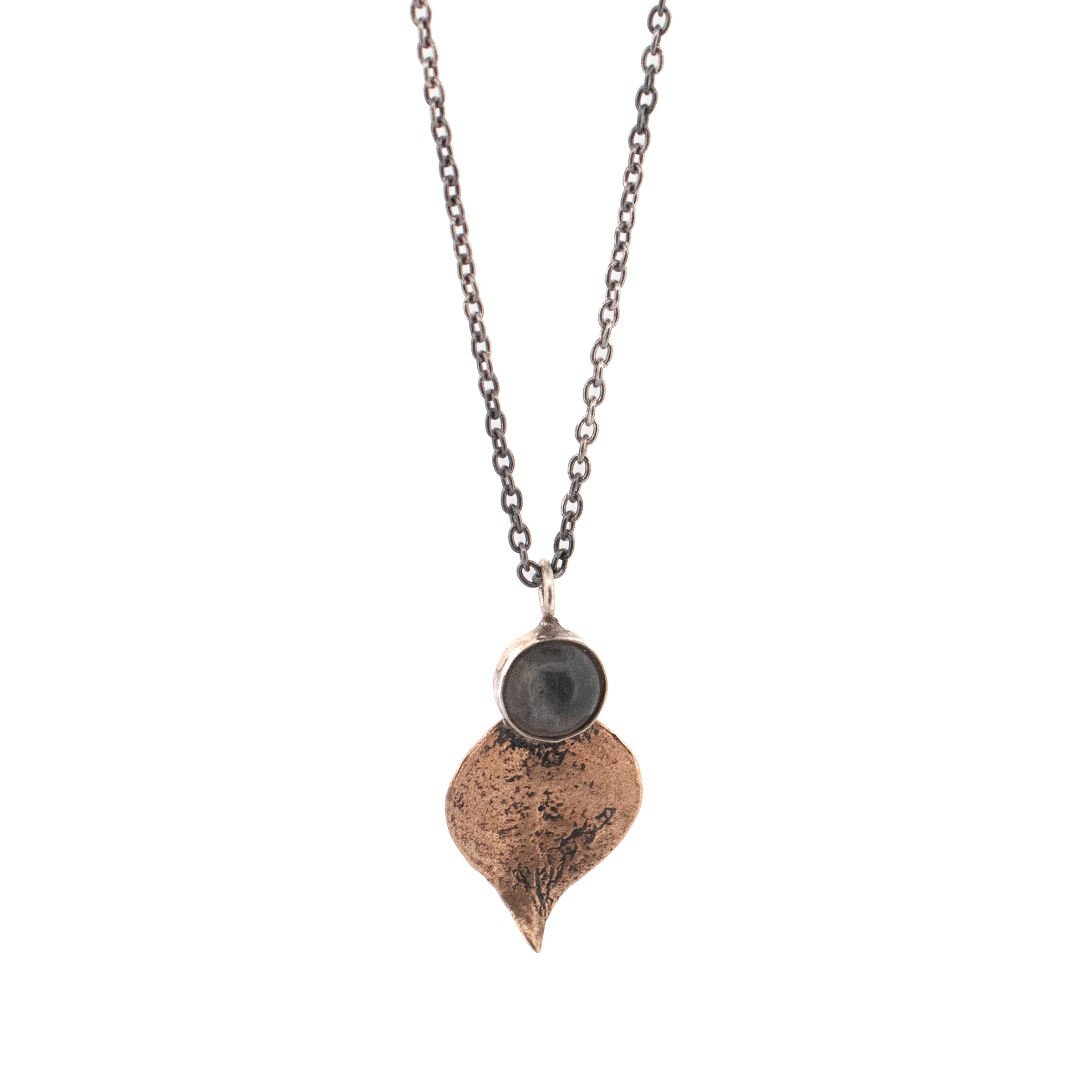 Nature's geometry is always a hit! A string of hearts succulent cast in bronze with an accompanying labradorite gemstone. Each piece is cast in solid metal preserving unique dimension and texture from source petals.
