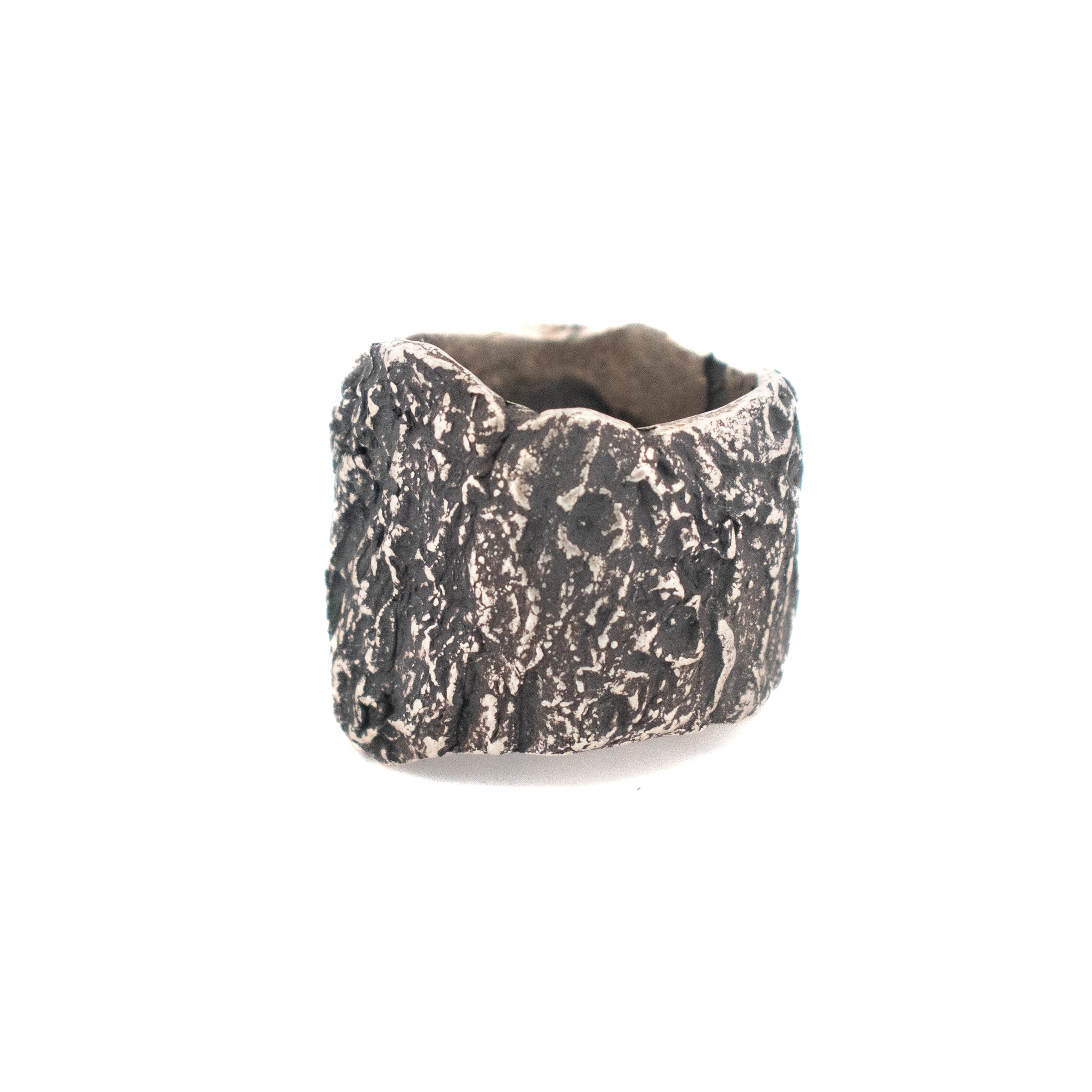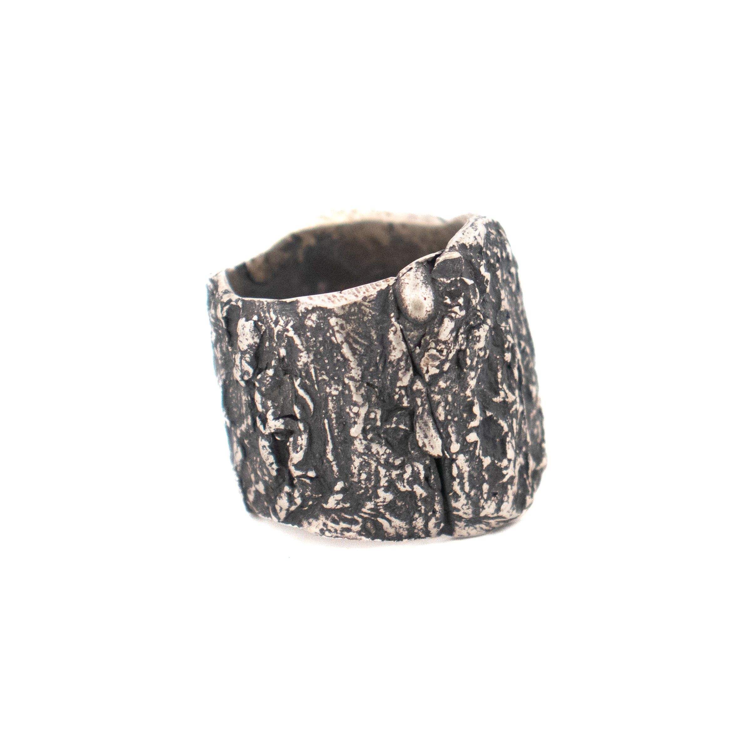 Tree bark rings are all about the texture! An excellent unisex style. I collect bark from woodpiles and fallen trees on my adventures all across Michigan. Every piece is cast in solid metal preserving unique dimension and texture from the source bark. An antique finish emphasizes this texture.