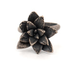 Show off the mesmerizing beauty of succulents with the floral succulent ring. The focal is cast from x Sedeveria, a cross between sedum and echeveria succulents. Each succulent is grown & collected from my plant collection in my Detroit home. In the summer months, succulents adorn my front porch, cascading out of their pots. In the winter I bring nature inside to live in my office windows. Each piece is cast in solid metal preserving unique dimension and texture from the source plant.
