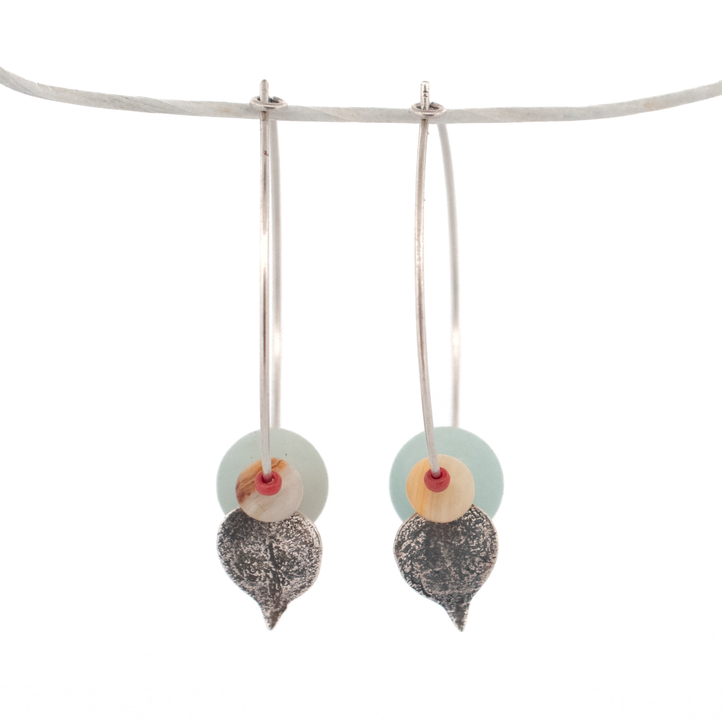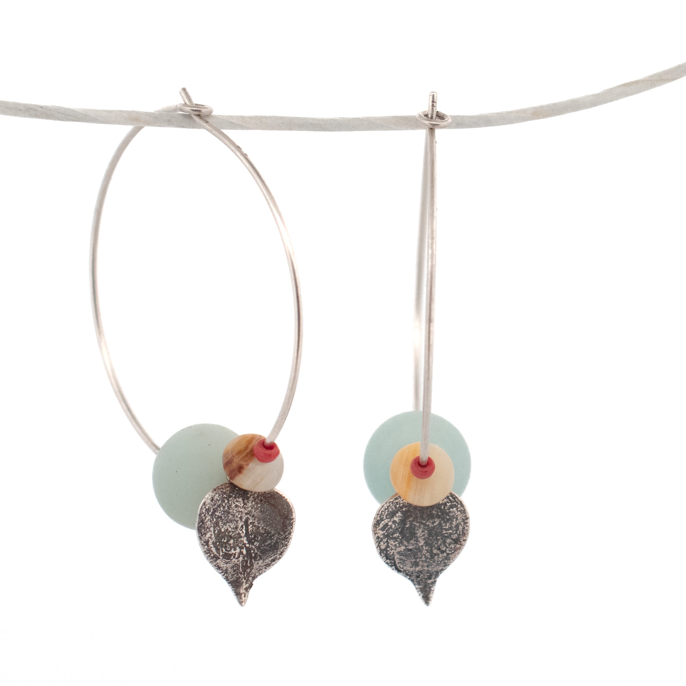 Undeniably unique earrings! I've been experimenting with gemstone beads and my cast focals on hoops. This pair features amazonite and jasper with string of hearts focals.  Each source succulent is grown & collected from my plant collection in my Detroit home. In the summer months, succulents adorn my front porch, cascading out of their pots. In the winter I bring nature inside to live in my office windows. Each piece is cast in solid metal preserving unique dimension and texture from the source plant.