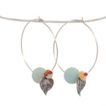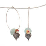 sterling silver string of hearts and gemstone beads hoop earrings