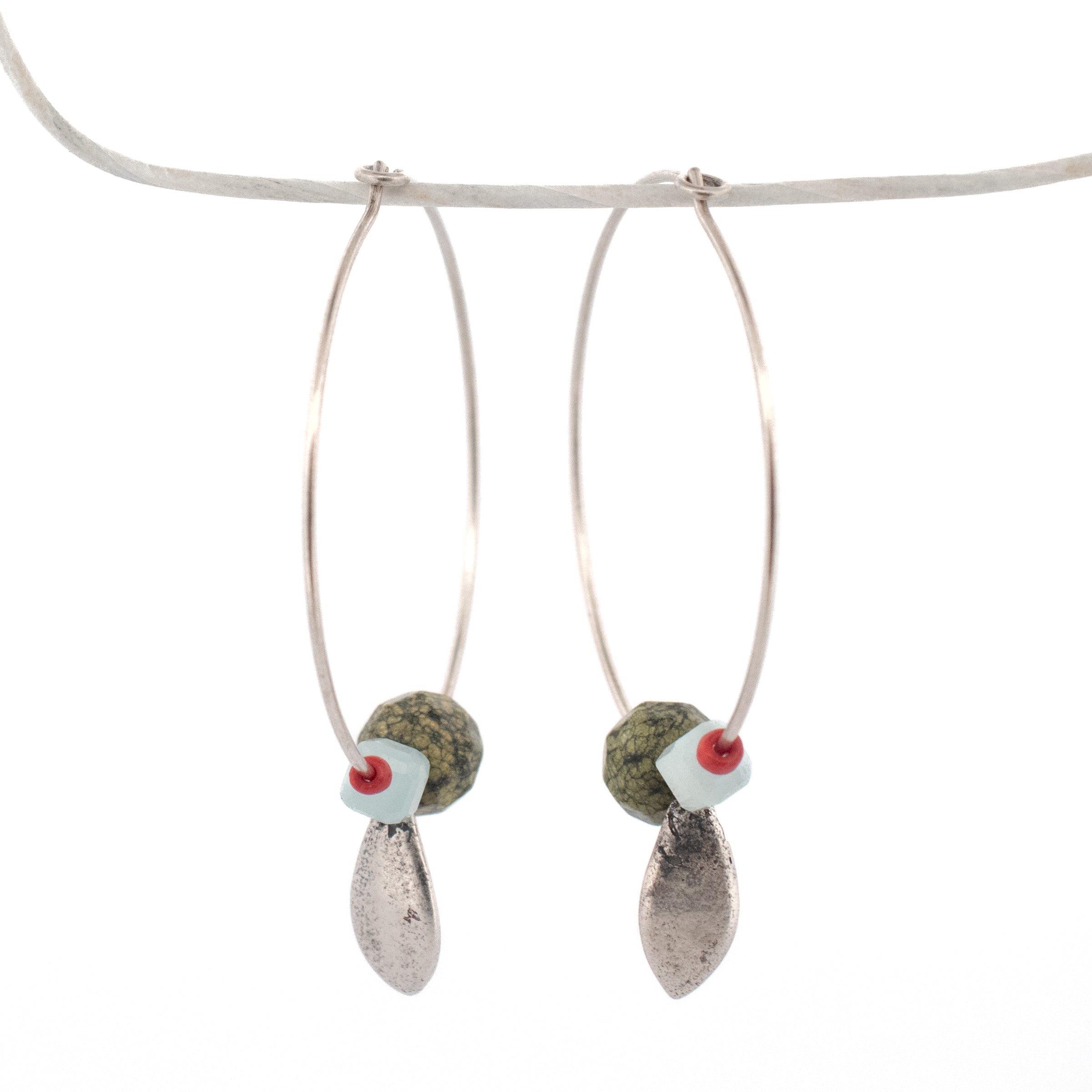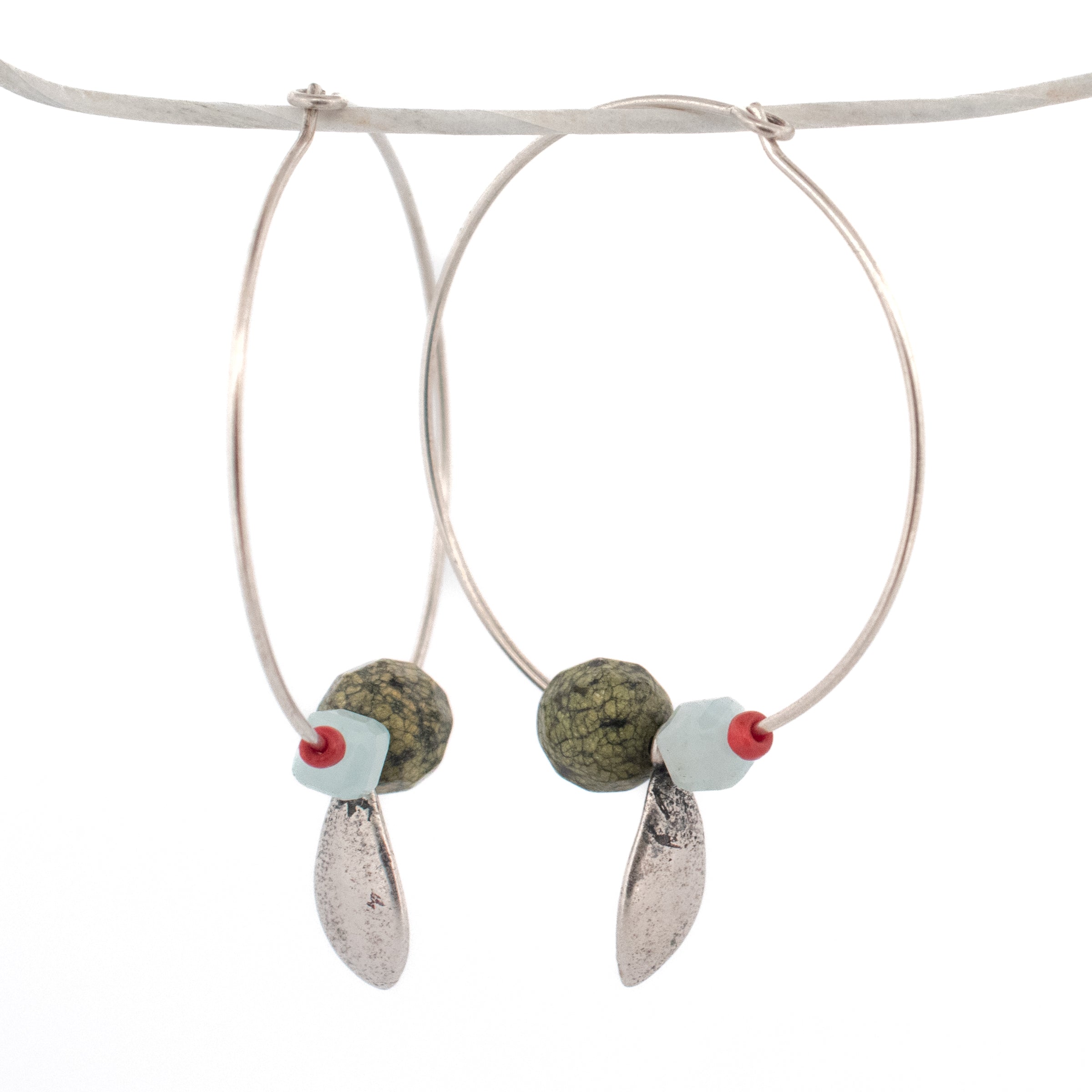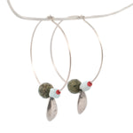 sterling silver succulent petals and gemstone beads hoop earrings