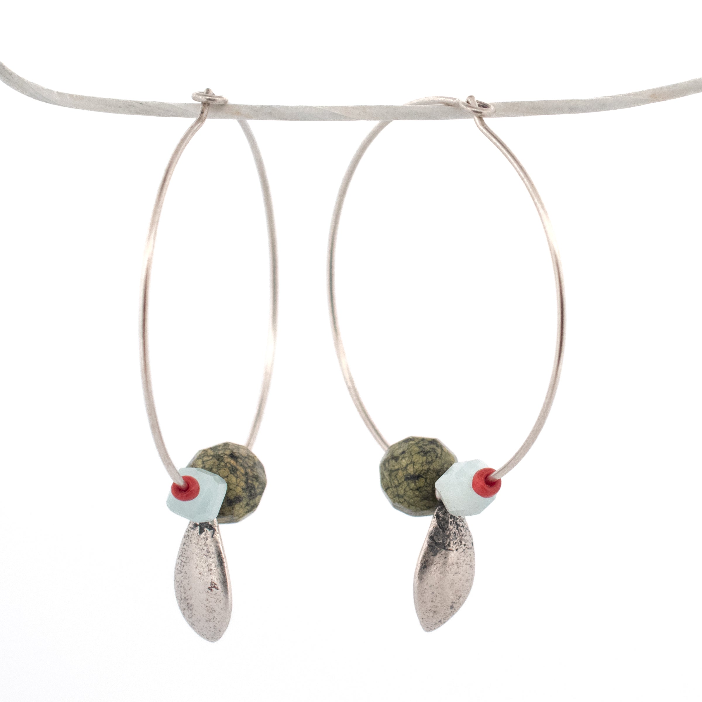 Undeniably unique earrings! I've been experimenting with gemstone beads and my cast focals on hoops. This pair features aquamarine with cast succulent petals.  Each source succulent is grown & collected from my plant collection in my Detroit home. In the summer months, succulents adorn my front porch, cascading out of their pots. In the winter I bring nature inside to live in my office windows. Each piece is cast in solid metal preserving unique dimension and texture from the source plant.
