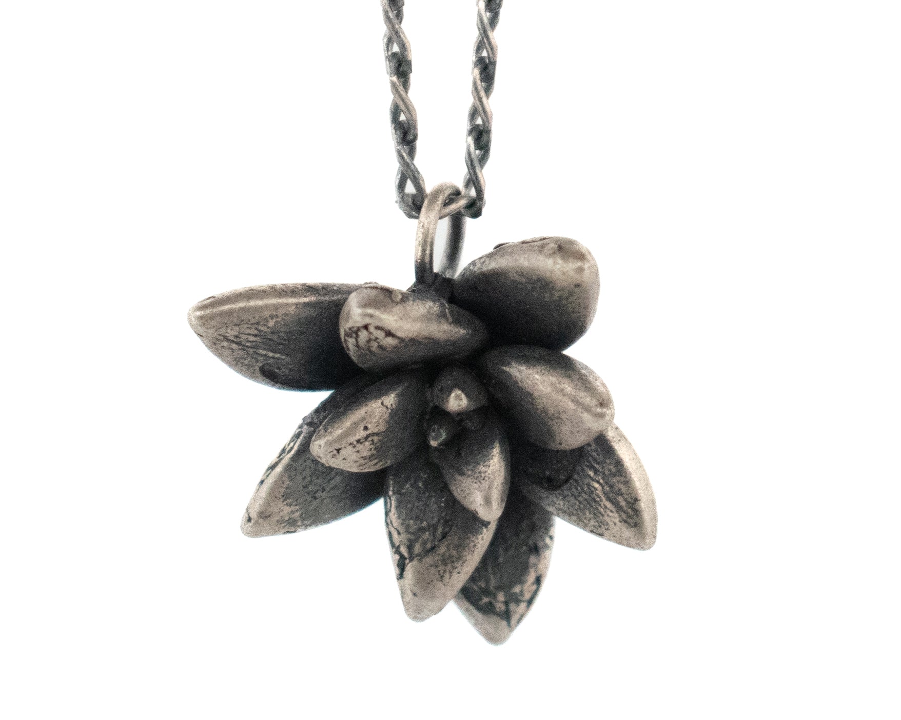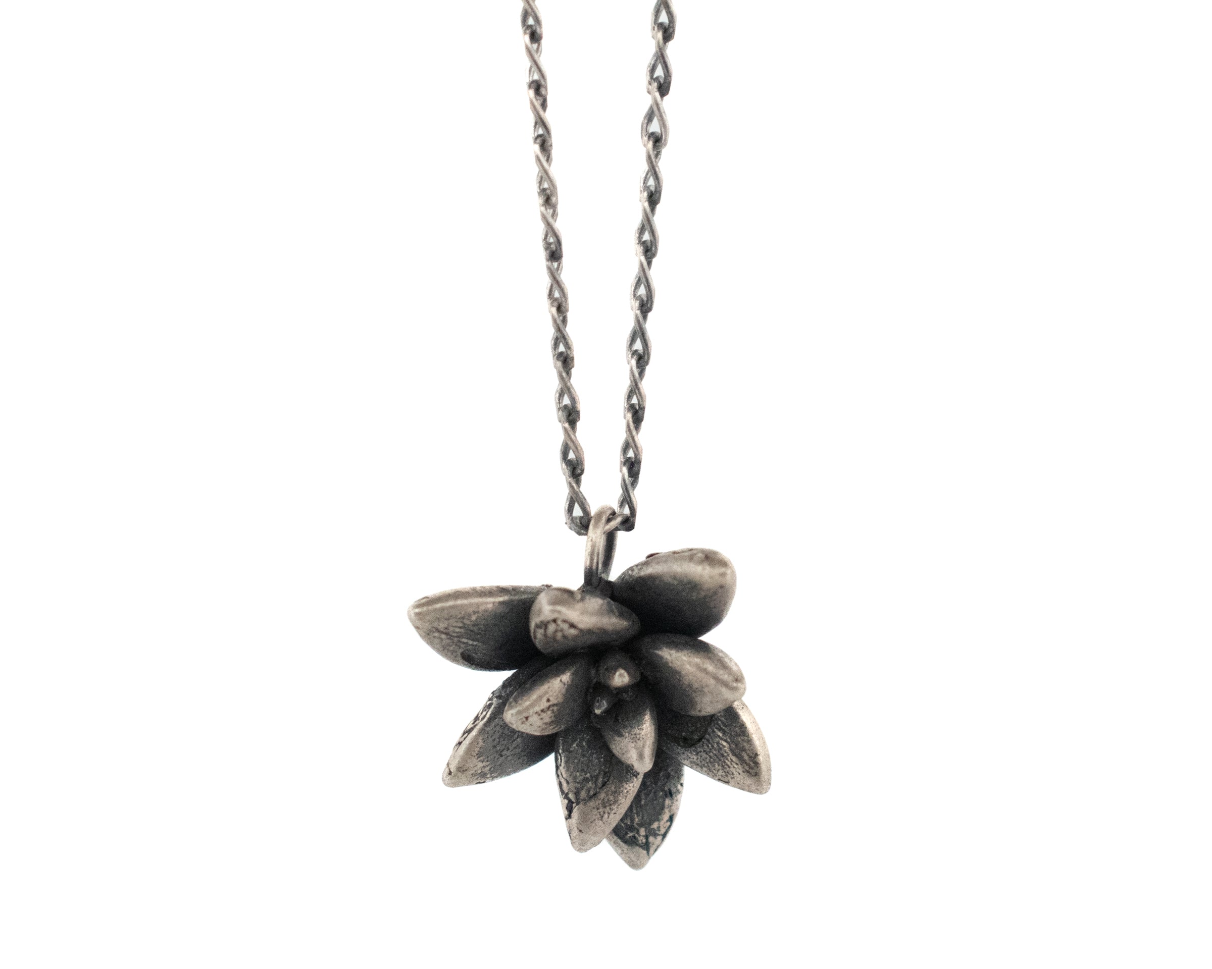 True-to-nature is more than a mantra, it is the why and how behind every piece I make. Each piece of jewelry is created from a once living elements- an ash seed, a succulent rosette, a chestnut twig. An exact replica is made by casting, pouring molten metal into a one time use mold of the plant.
