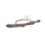 A simple twig rests on 2-3 fingers. Similar in look to a double-finger ring but without the restrictions. Recommended for middle finger for easiest wear. Created from a Chinese chestnut branch sourced from my parent's back acre. Cast in solid sterling silver preserving unique dimension and texture from the source plant.