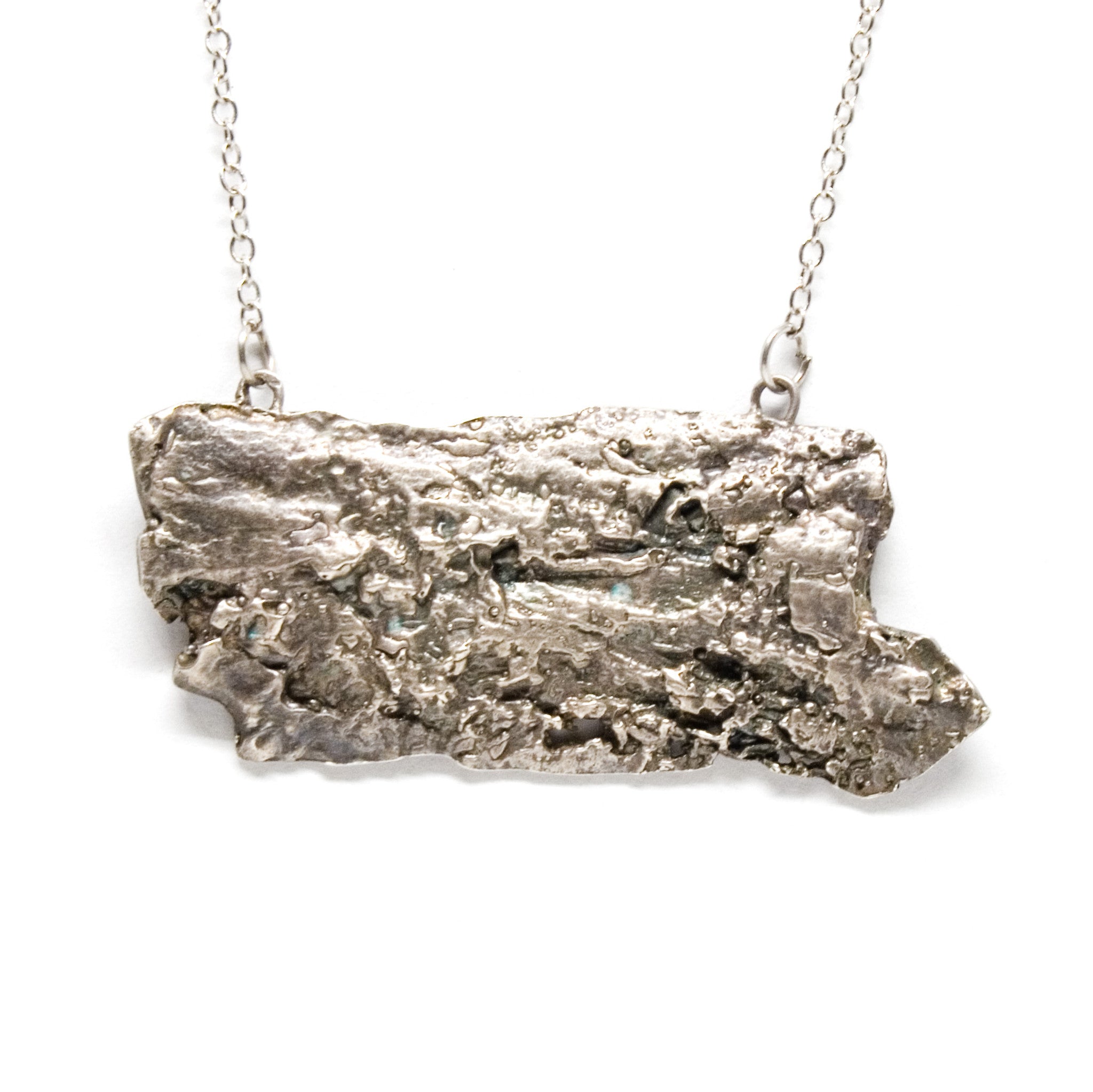 Found natural ephemera becomes treasured jewelry in silver, bronze, or gold. All pieces by Tree Trunk Arts are created with a lost wax casting process that ensures each piece is entirely unique. Chosen plant parts are encased in wet plaster to create a mold. Plaster molds enter a kiln for 8+ hours, burning out all plant material. Metal is centrifugally thrown into the remaining mold creating a solid metal model ready to become heirloom-quality jewelry